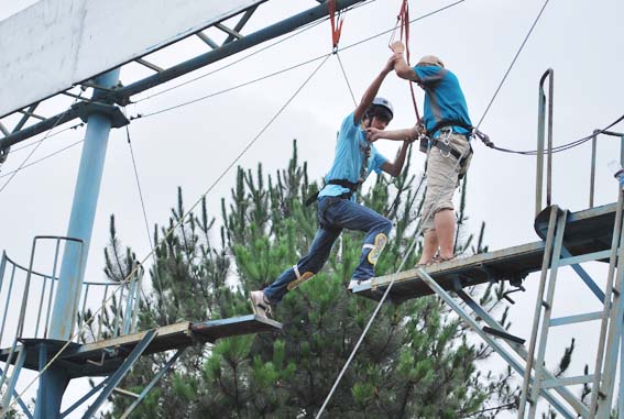 參加訓練的64名隊員(含銷售部的3位隊員)分成無敵隊、先鋒隊、西班牙隊三個小組,展開了較量。他們經歷了“市場迷宮”的考驗、感受了“七巧板”營銷游戲的切膚之痛、經受了在雨中“斷壁攀巖”的挑戰、分享了“畢業墻”的感動。在兩天的拓展活動中,東信人吃苦耐勞、勇于拼搏的精神得到了充分地體現。