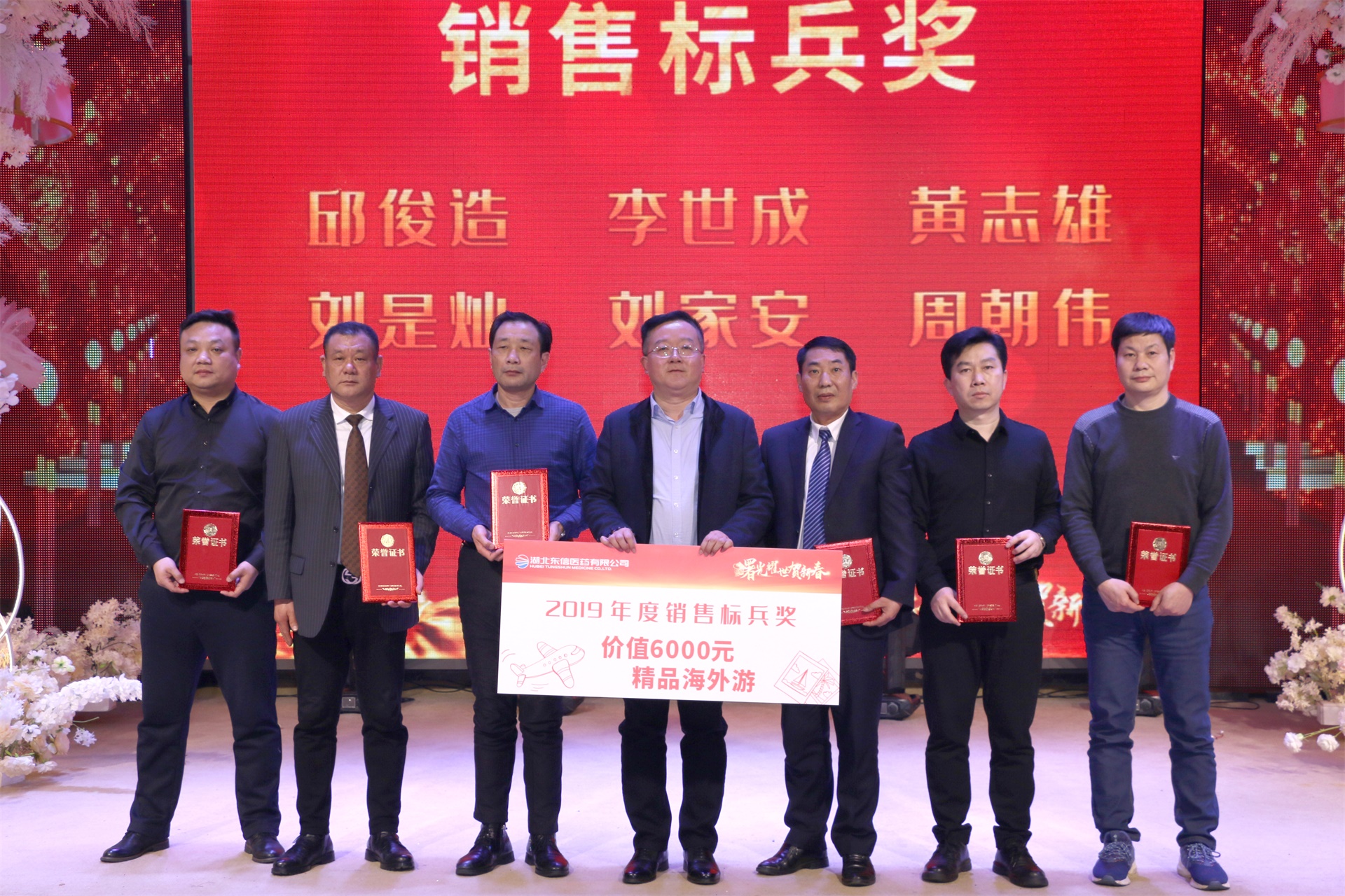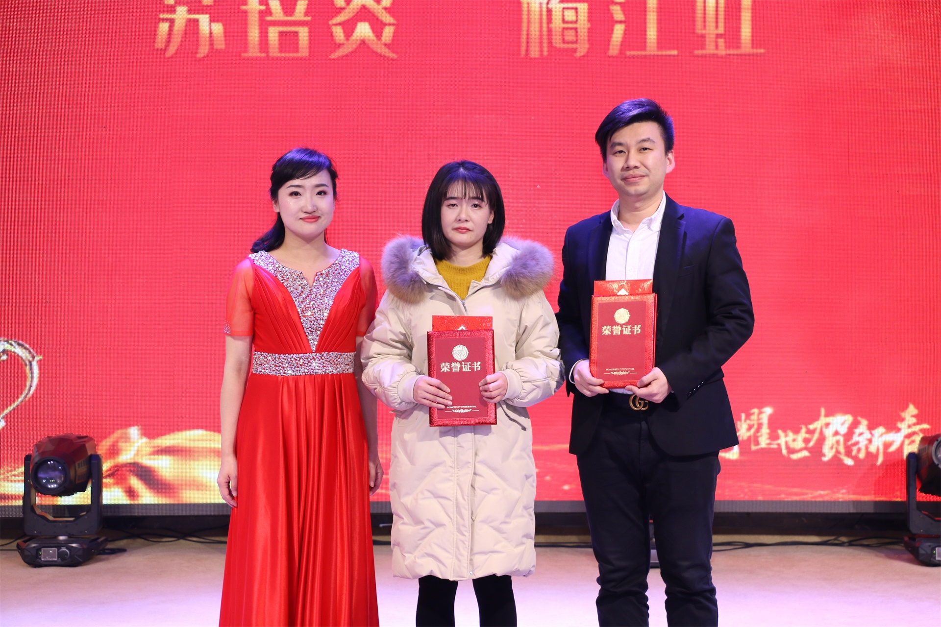 在精彩的節目進行過程中,表彰活動也穿插進行。東信醫藥集團總經理陳向先生,公司總經理黃少偉先生、副總經理營銷總監李建軍先生,各職能部門的領導相繼揭曉了“東信醫藥2019年度表彰大會”的各個獎項,并向獲得榮譽的先進團隊和個人頒發獎金及榮譽證書。
