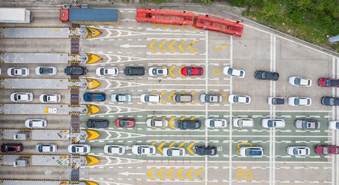 3月24日,在武漢西高速收費站交通卡點,返漢車輛排隊等候入城。