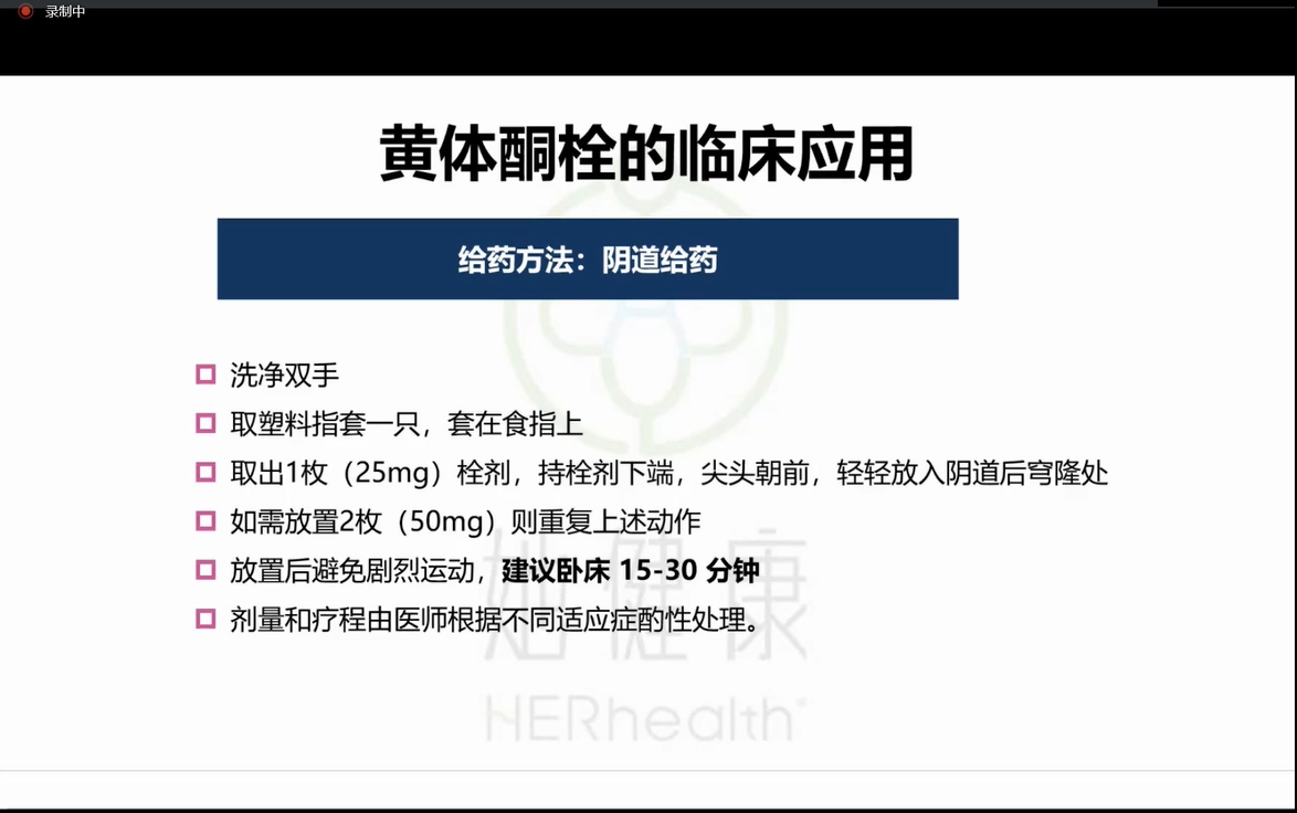 在會議的第二部分,張主任介紹了其對靜青黃體酮栓在臨床上的使用心得,著重提出了靜青黃體酮栓的獨特水溶性基質帶給患者的獲益,并特別點明和強調了什么情況下采用直腸給藥方式,其表示黃體酮栓劑為黃體酮的應用開辟了“第四通道”,值得推廣應用。