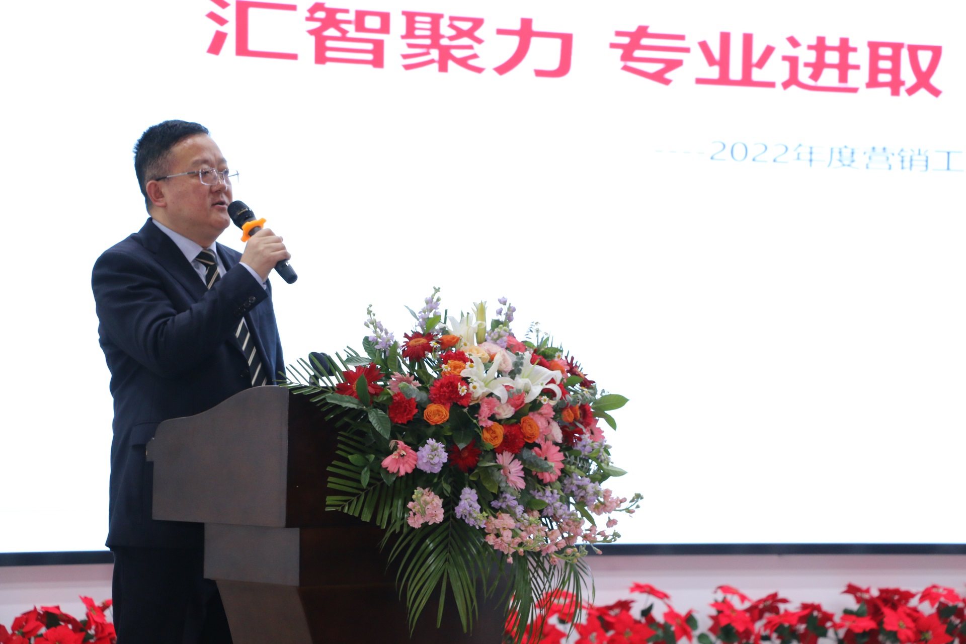 在分析2021年醫藥市場環境的基礎上,李總提出了2022年的營銷目標、策略和工作部署。李總要求全體營銷將士統一思想,匯聚智慧,凝聚力量,層級賦能,由上而下助力,最大限度地激發員工的才智和潛能,做好特色品種、優勢品種的推廣工作,通過“五大工程”的推進,優化產品結構和渠道、終端布局,結合“綠色用藥,健康中國”主題推廣活動,不斷提升東信品牌的知名度和美譽度,壯大市場份額;通過點上的創新,帶動面上的突破,在傳承中發展,在發展中創新,在創新中提升,實現“彎道超車”和“變道超車”,用智慧和汗水斬獲驕人的成果和佳績,共同譜寫2022年的新篇章。