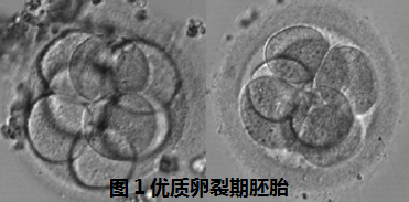 卵裂期胚胎的移植一般會選擇在胚胎發育的第3天(取卵當天為第0天);優質卵裂期胚胎應為較少碎片,卵裂球大小均勻,胞質未見明顯異常如空泡、黑粗顆粒等,卵裂球數目≥6個(最好選擇7≤卵裂球數目≤9),見圖1。