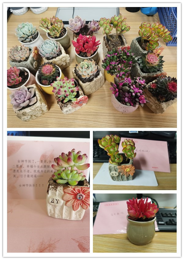 早上來到公司,女神們發現自己的辦公桌上多了一盆萌萌噠多肉植物,還有一份男同事簽名的節日祝福卡。