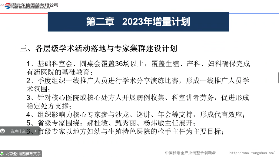 會(huì)議期間,各省區(qū)經(jīng)理聯(lián)席主持各戰(zhàn)略合作伙伴,就2023年醫(yī)院開(kāi)發(fā)、銷售任務(wù)、學(xué)術(shù)活動(dòng)執(zhí)行、核心專家集群建設(shè)、資金投入等方面作出明確規(guī)劃,努力打造產(chǎn)品知名度,提升品牌影響力,維護(hù)市場(chǎng)秩序,提升醫(yī)院覆蓋率,爭(zhēng)取在2023年取得高質(zhì)量發(fā)展。未來(lái),東信將攜手各戰(zhàn)略合作伙伴,攜手共進(jìn),互利共贏,共同開(kāi)啟東信專業(yè)化學(xué)術(shù)推廣新紀(jì)元。