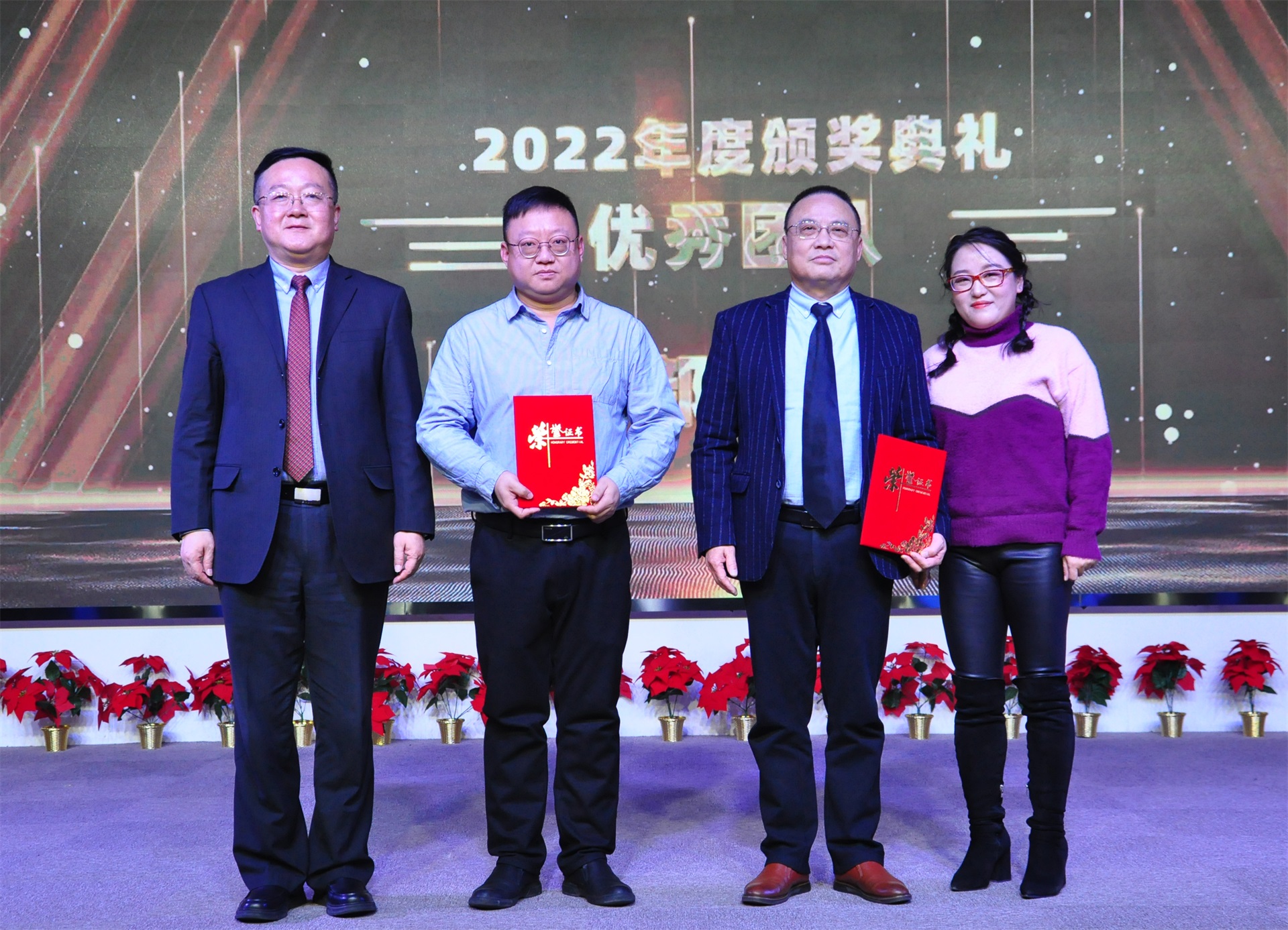 在精彩的文藝演出過程中,表彰活動,綜藝節(jié)目、娛樂游戲穿插進行。東信醫(yī)藥董事長田南希女士、東信醫(yī)藥總經(jīng)理李建軍先生、黨支部書記兼副總經(jīng)理張琳女士、副總經(jīng)理楊青女士,以及職能部門的負責人相繼揭曉了“東信醫(yī)藥2022年度表彰總結大會”的各個獎項,并向獲得榮譽的先進集體和個人頒發(fā)獎金及榮譽證書。