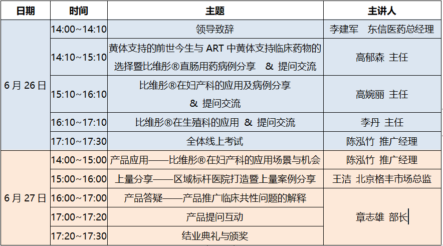 6月26日,“比維彤®黃體酮栓精英訓練營·黃埔二期”正式拉開帷幕,此次活動以線上形式展開,為期兩個半天,特邀北京天壇醫院婦產科高婉麗教授、廣東醫科大學惠州婦女兒童醫院生殖科高郁森主任、湖北省中西醫結合醫院生殖科李丹主任,三位專家就比維彤栓在婦產、生殖領域的應用展開了詳盡的介紹,并分享了寶貴的臨床使用經驗和病例。來自全國各地的臨床醫生、合作伙伴、學術推廣經理、一線醫藥信息溝通專員上線參加了此次會議,累計上線人數300人以上。