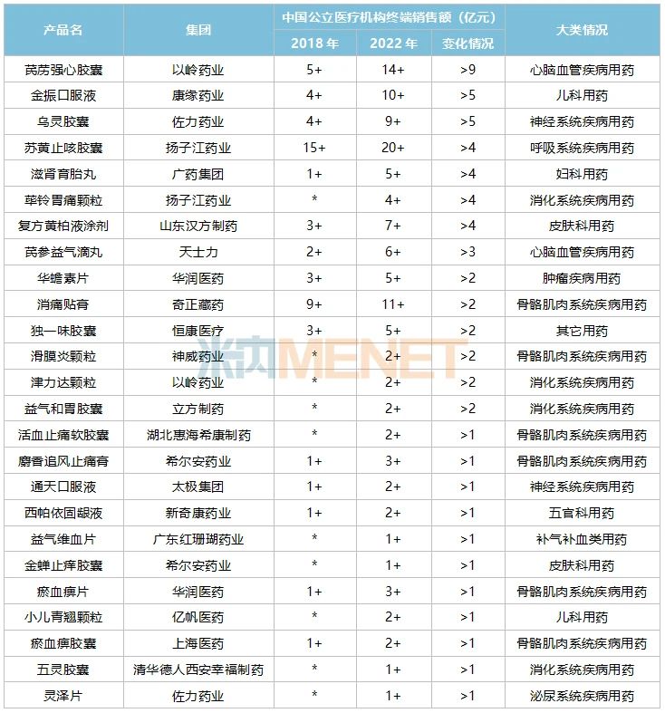 數據顯示,2018版國家基藥目錄新增的獨家中成藥中有25個產品2022年在中國公立醫療機構終端的銷售額比進入目錄前(2018年)增長超過1億元。
