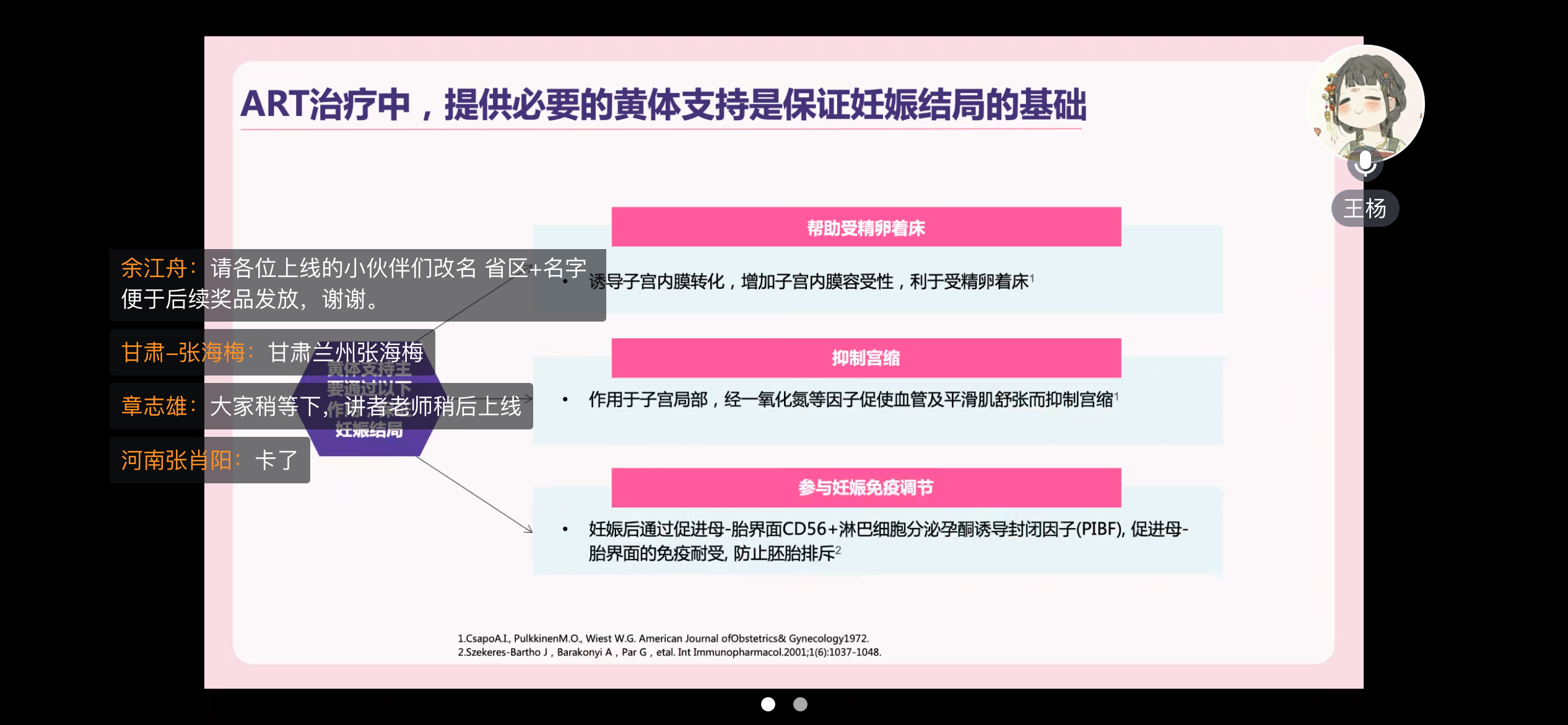 上海曙光醫院生殖科的王楊老師帶來了《黃體支持的前世今生與ART中黃體支持臨床藥物的選擇》,王老師先介紹了黃體支持在ART中的必要性,可以提高持續妊娠率以及活產率、改善妊娠結局。其次介紹了黃體酮近代以來的發展史,并通過黃體酮栓與陰道用凝膠的臨床觀察得出結論:ART黃體支持中,黃體酮栓有更高的著床率、妊娠率以及更低流產率。