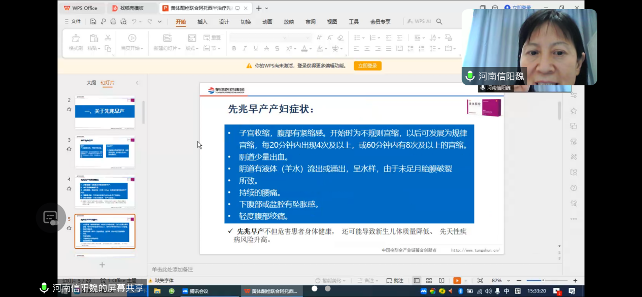 河南信陽市中心醫院婦產科主任李艷麗老師講題是《黃體酮栓聯合阿托西班治療先兆早產的臨床療效》,李老師介紹了先兆早產以及預防先兆早產的常用藥物,并結合文獻分享了黃體酮栓聯合阿托西班治療先兆早產的臨床效果良好。最后李老師也講述了黃體酮栓的用藥體會,作為陰道外用藥,沒有經過肝臟的首過效應,直接作用于子宮,子宮的局部藥物濃度大于全身血藥濃度。與針劑相比,黃體酮栓耐受性更好,依從性更佳。