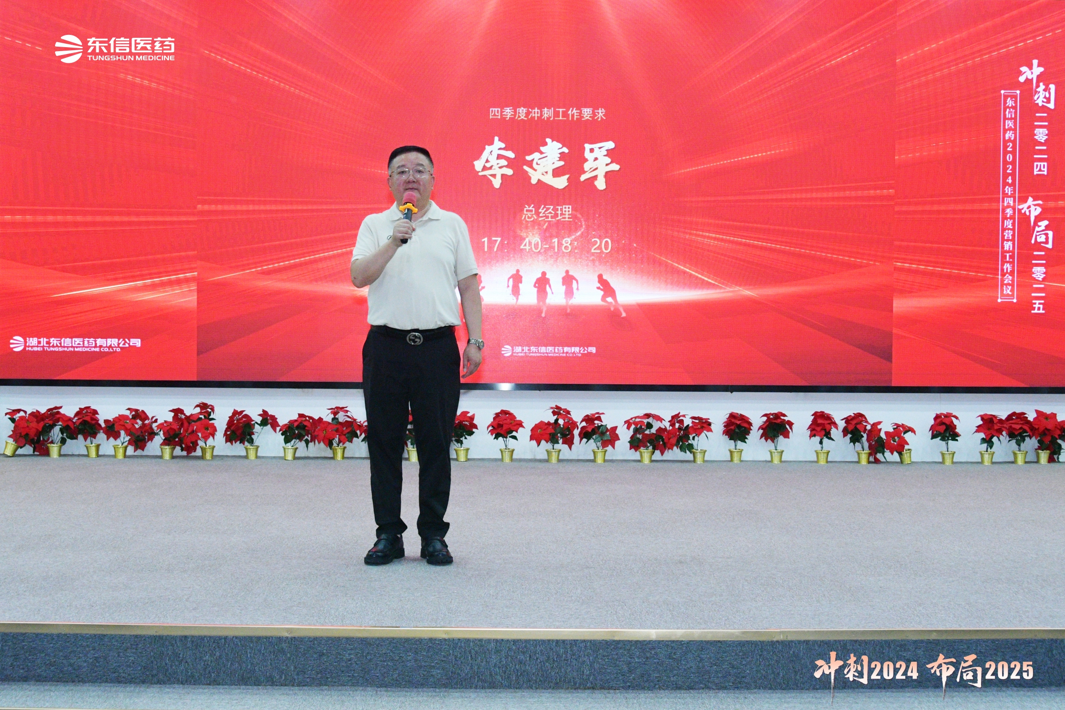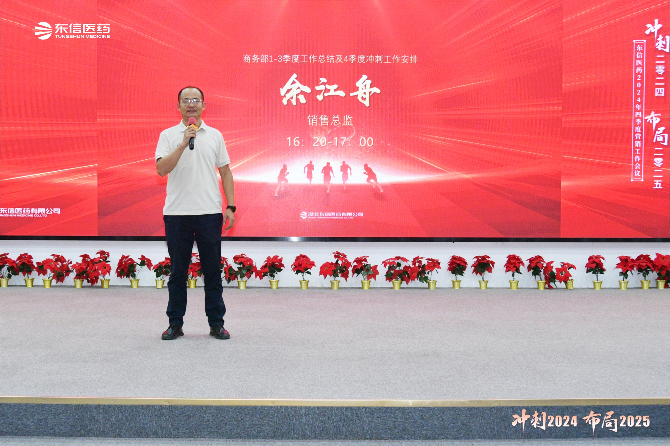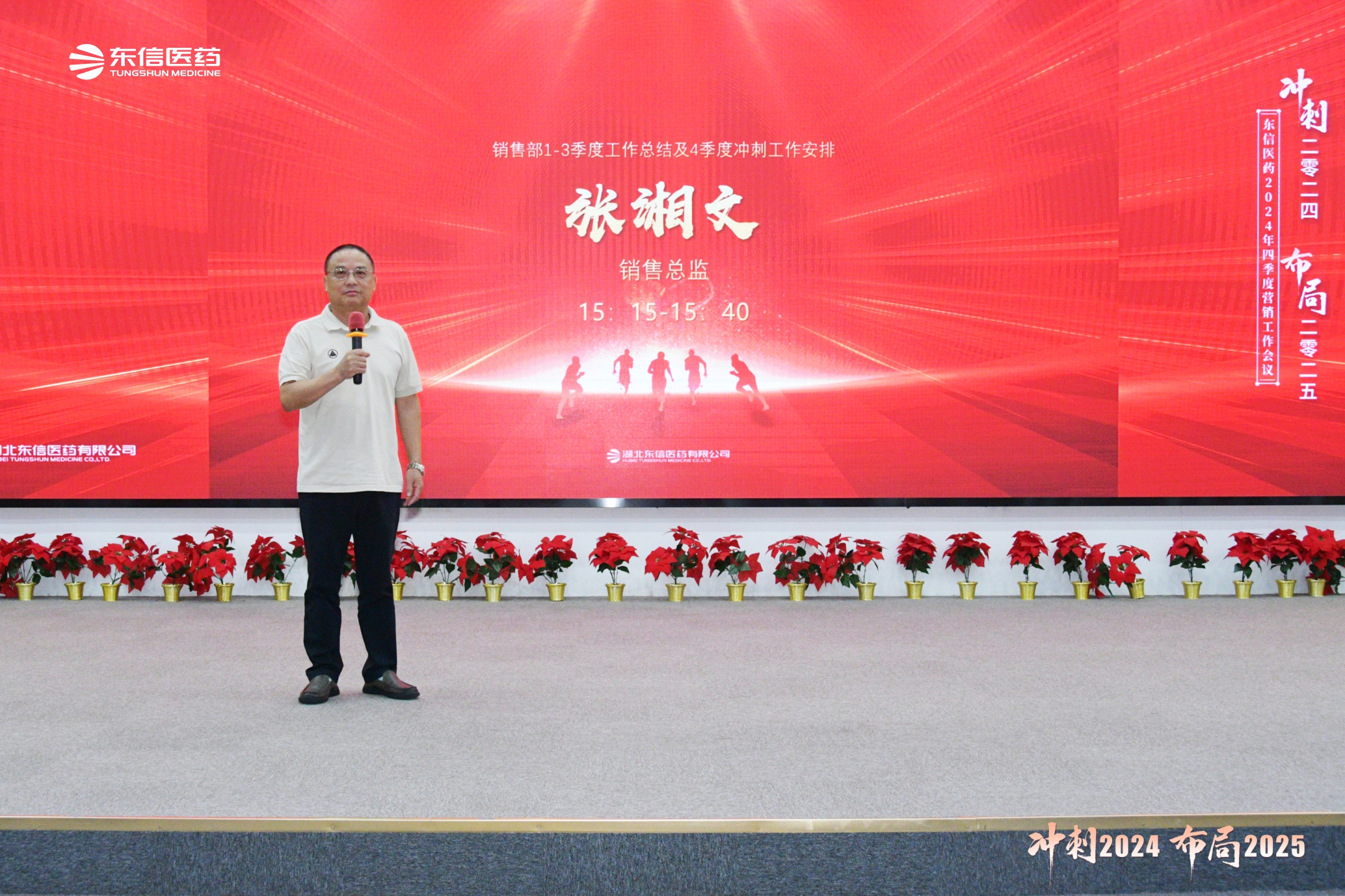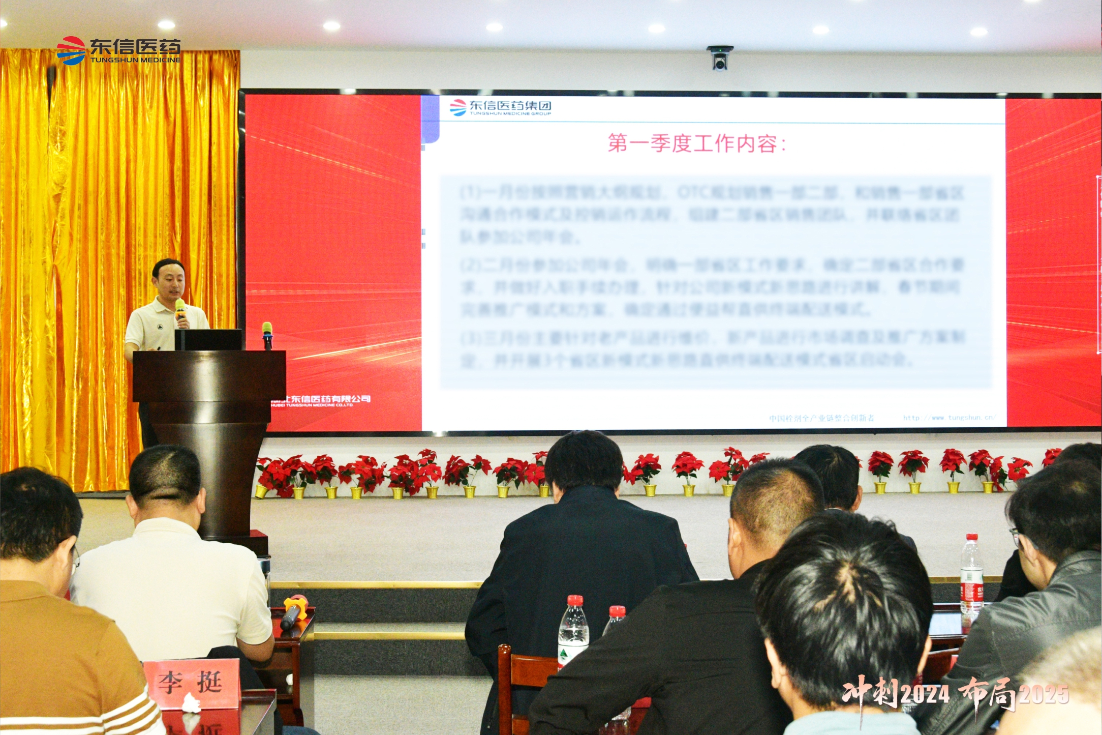 2024年10月7日,湖北東信醫藥有限公司2024年四季度營銷工作會議在武漢勝利召開。來自四川、湖北、湖南、河南、江蘇、廣東、甘青寧、浙江、安徽、山東等十幾個省區的省區經理、地區經理,以及銷售部、OTC部、商務部、市場部、財務部、質管部等部門的領導出席會議。