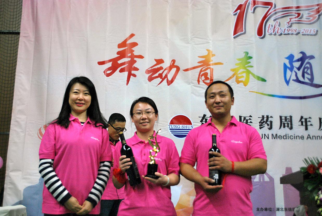 2015年11月16日下午,湖北東信醫藥有限公司在武漢市和祥體育運動中心隆重舉辦了以“舞動青春,隨夢起航”為題的東信醫藥17周年慶運動會。公司全體在漢員工參加了本次周年慶運動會,公司董事長田南希女士、總經理陳向先生、黨支部書記、公司副總經理閔超先生、副總經理兼營銷總監李建軍先生以及公司各部門的負責人出席了運動會。