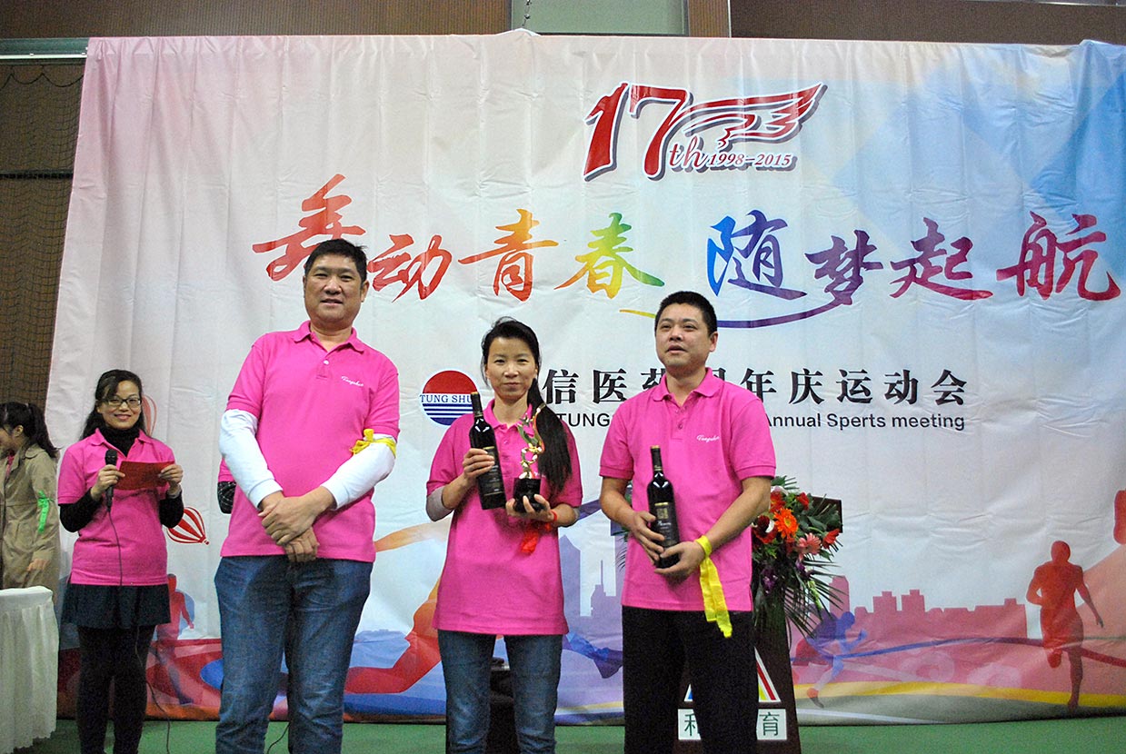 下午17時,運動會所有比賽項目結束,公司董事長田南希女士、黨支部書記、公司副總經理閔超先生、工會主席付均女士為獲獎的選手頒發了獎杯和獎品。