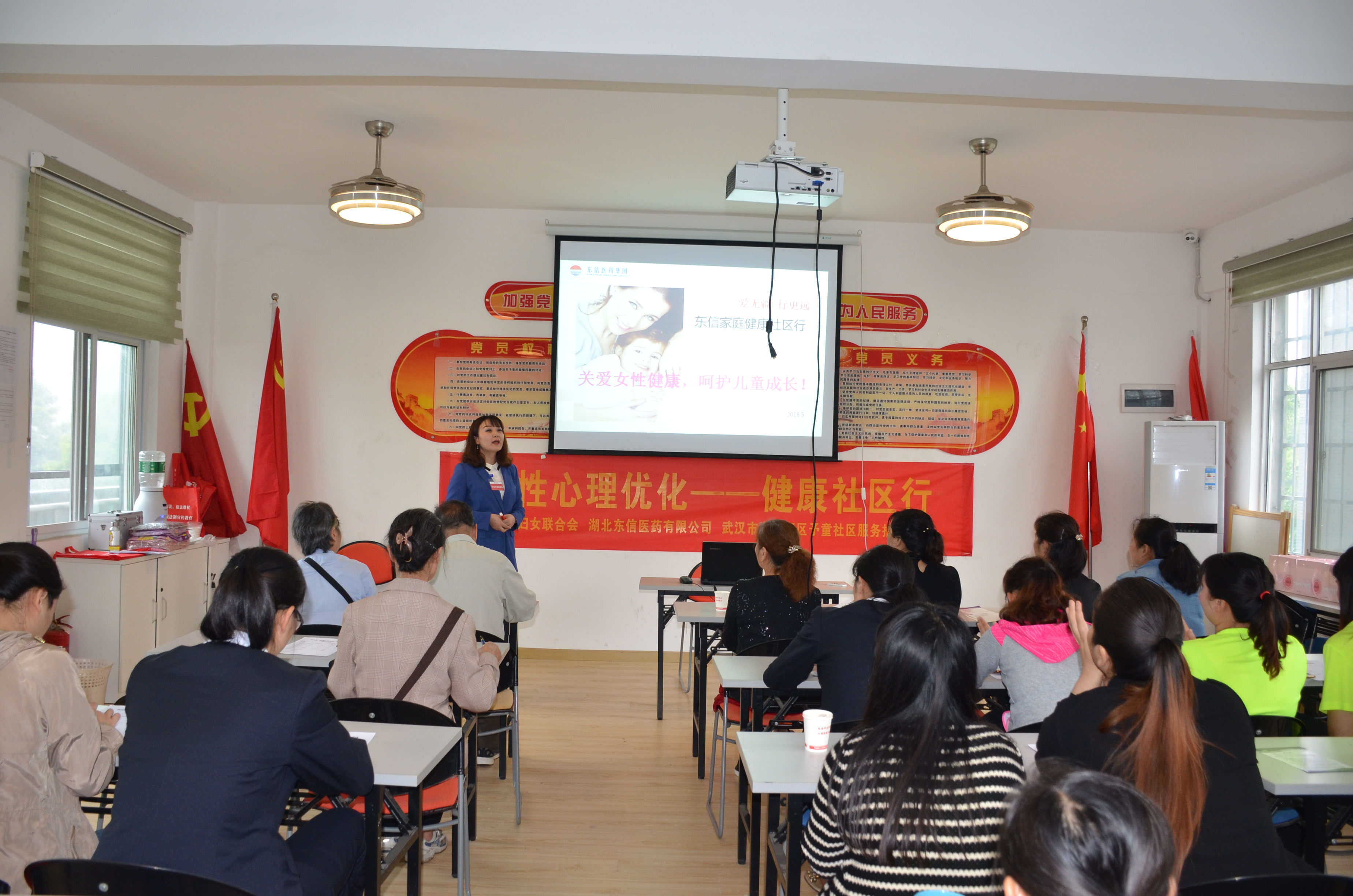 5月11日,東信醫(yī)藥集團(tuán)聯(lián)合武漢市婦女聯(lián)合會(huì)、予童社區(qū)服務(wù)指導(dǎo)中心在武漢市東西湖花城社區(qū)服務(wù)指導(dǎo)中心開展了“女性心理優(yōu)化——健康社區(qū)行”公益活動(dòng)。