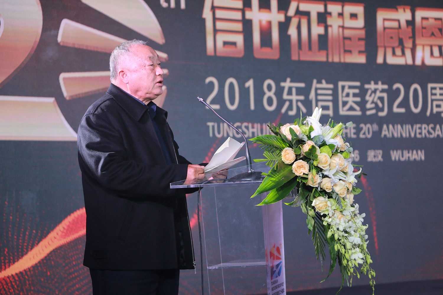 湖北省醫藥行業協會秘書長程波濤代表行業協會對東信醫藥集團20年發展取得的成果表示熱烈的祝賀,對東信醫藥集團積極參與、支持行業協會的工作,認真貫徹落實行業監管部門的指示精神,推進科技創新、管理創新、營銷創新、品牌建設給予了高度評價。