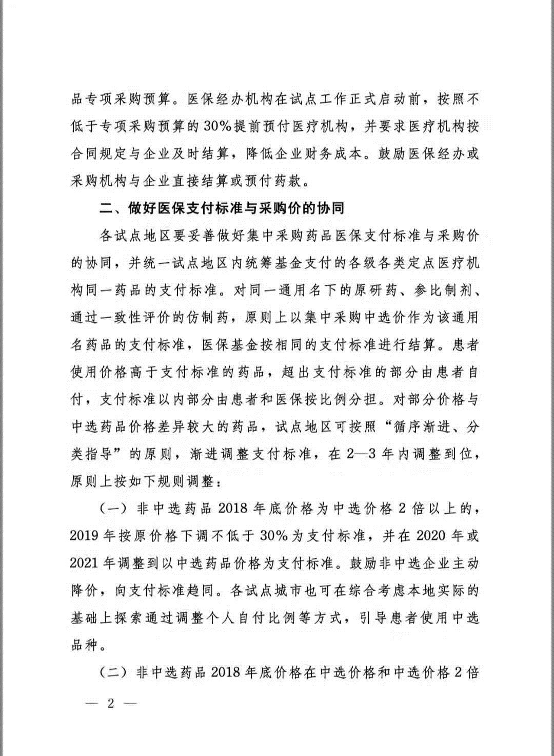 《國(guó)家醫(yī)療保障局關(guān)于國(guó)家組織藥品集中采購(gòu)和使用試點(diǎn)醫(yī)保配套措施的意見(jiàn)》明確規(guī)定:將4+7集采中選價(jià)作為醫(yī)保支付標(biāo)準(zhǔn),超出部分患者自負(fù);非中選品種價(jià)格是中選價(jià)2倍以上的,按原價(jià)格下調(diào)30%作為支付標(biāo)準(zhǔn);2倍以內(nèi)的,以中選價(jià)作為支付標(biāo)準(zhǔn);2-3年逐步調(diào)整到位。