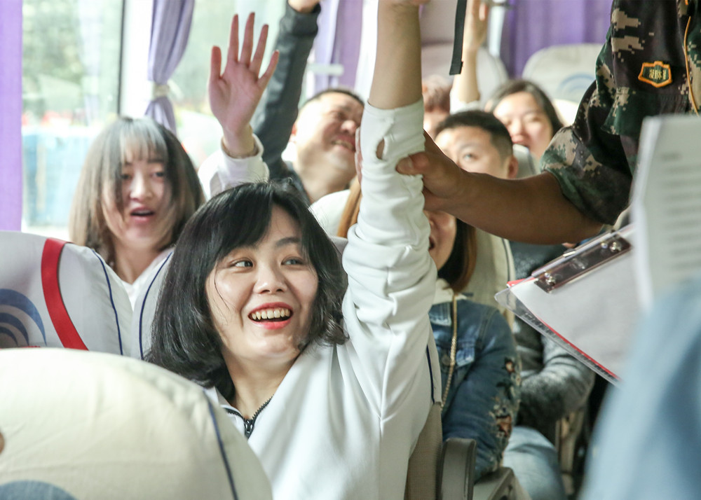 前往紅安的路途中,東信醫藥的家人們在車上開展知識競賽問答環節,這個環節的知識點分為愛國、軍運、企業文化、產品知識四個部分,知識問答環節賺取的積分會影響到大家晚餐的質量,每個人都積極參與,踴躍舉手,氣氛異常活躍。