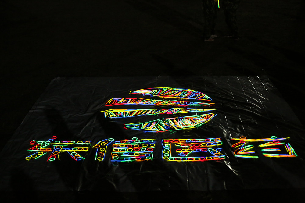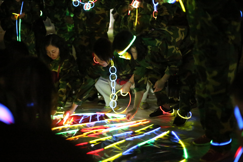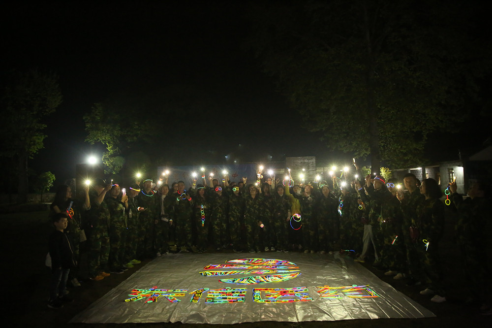 夜幕降臨,東信家人們迎來了今天最后的節目——熒光棒晚會,大家齊心協力用熒光棒擺出東信LOGO的造型,看著夜空里閃閃發光的東信LOGO,大家都為身為東信人感到驕傲和自豪。