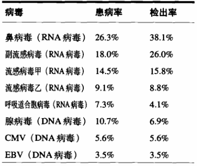 兒童的免疫系統尚未發育完善,比成人更容易受到病毒的侵害,兒科常見病毒感染的患病率與檢出率見下表。