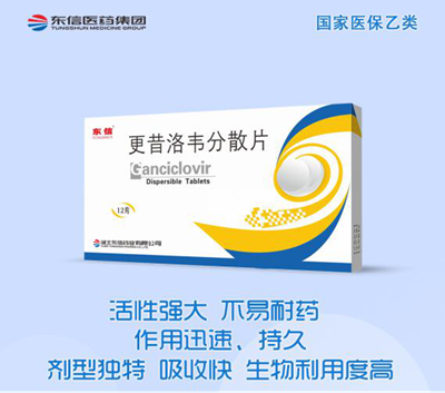 ①更昔洛韋(GCV):靶目標是皰疹病毒類的病毒,其抗巨細胞病毒活性最強,是兒童CMV嚴重感染的一線用藥,其競爭性抑制病毒DNA多聚酶,并直接摻入病毒DNA,終止病毒DNA鏈的延長,對病毒DNA聚合酶的親和力高于正常細胞15%,因此療效高,活化的GCV在感染細胞內的濃度比正常細胞高10倍、比阿昔洛韋高10倍,且GCV半衰期比阿昔洛韋長,不需一日多次用藥,并能在細胞內持續存在數天;常見使用有更昔洛韋注射液和更昔洛韋分散片,后者雖是口服,但分散片吸收更好、生物利用度較一般口服劑型更高。