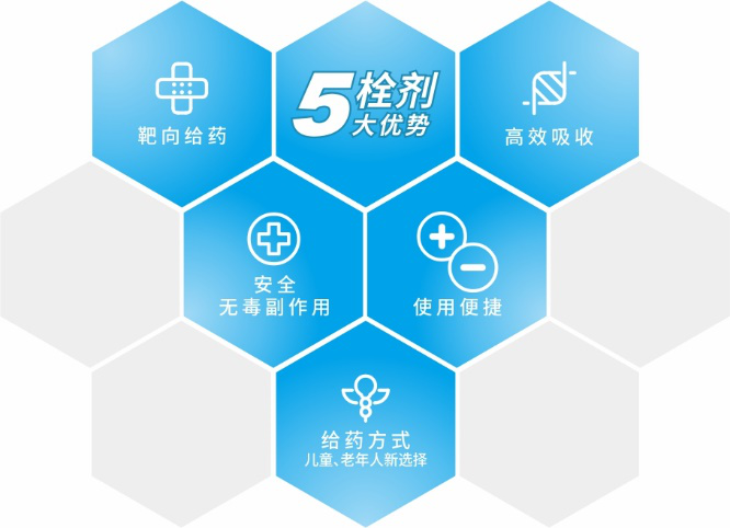 靶向給藥,腔道黏膜快速吸收,起效時間短,作用時間長;